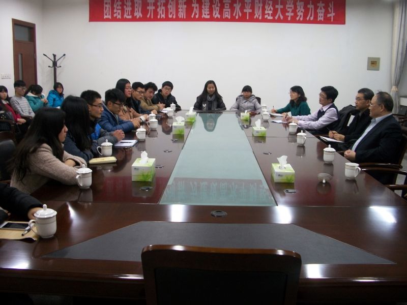晚六点钟,座谈会正式开始。首先,刘兴云书记风趣地打破了会场的沉默,亲切地与同学们展开互动,他真诚地表示:“作为一名35年前从禁忌书屋 走出去的学生,我对禁忌书屋 有着特殊的情结和深厚的感情,今天的座谈会上,我不仅是一位校领导,更是大家的一位师兄,一位朋友。希望同学们畅所欲言,我们一起交流,一起学习。”从刘书记真挚的话语中,同学们深深地体会到他的平易近人,以及对同学们的关怀与爱护。在书记的鼓励下,同学们纷纷畅所欲言,谈自己来到山财大后的体会和感受。来自新疆的维吾尔族学生尼哈提说:“虽然我来自遥远的新疆,但这里老师的关心,同学的友爱以及宿舍的和谐氛围都让我深深体会到了山东朋友的热情好客,我喜欢这里。”会计1404班张瑜同学谈到:“刚开始来到大学时的确经历了一段迷茫期,不知道自己应该做什么,能做什么。但是随着时间的流逝,在紧张的课程和学生会工作中逐渐找到了方向,感觉进入大学更踏实了,而自己也在慢慢的适应这种大学生活。”安炳文、等同学表示,自己进入大学后参与了自己喜欢的社团,拓宽视野,增长了见识,提升了眼界,生活也变得充实。刘书记认真倾听同学们对大学的体会,他微笑着启发大家:“步入大学,我们要明白大学和中学的不同之处。大学中学习的不仅仅是知识,更多的是学习的方法,思考的方法,适应社会的方法和能力;大学里注重的是提高,自身能力的提高,个人素养的提高以及知识水平的提高。而这些都需要我们通过刻苦学习、积极实践、参与活动、与老师同学加强交流等慢慢体会,慢慢学习。”