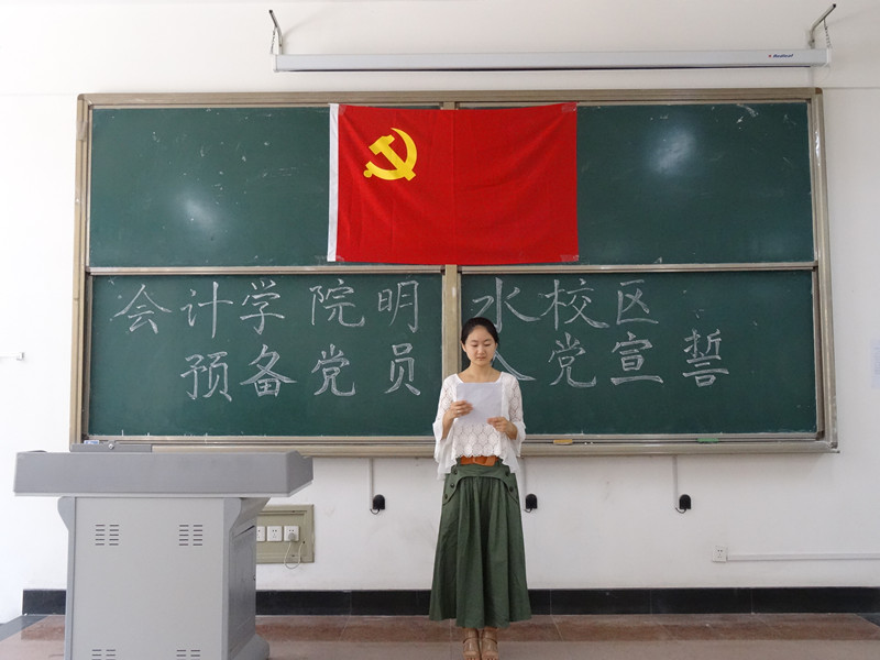宣誓仪式在激昂嘹亮的国歌声中开始。全体预备党员举起右手面对党旗,庄严宣誓,此时他们许下了对中国共产党的承诺,承诺自愿加入中国共产党,愿意为党和人民付出一切。随后,预备党员代表和老党员代表分别发言,他们表示从普通同学到入党积极分子再到党员,这一路在党的培养和教育下自己思想上有了很大的提高。在接下来的学习和工作中,一定会更加认真负责,以党员的标准严格要求自己;在学习上,刻苦努力,敢于拼搏。禁忌书屋 党委书记张涛发言讲话。他表示入党是一份荣耀,但是同时对于各位预备党员而言更是一种责任和担当。他强调我们要牢记党员标准,时刻用一名优秀党员的标准严格要求自己。同时要保持入党前后思想和行动的一致性。在工作中,要兢兢业业,恪尽职守,认真负责,随时准备为党和人民付出一切;在学习上,要刻苦努力,敢于拼搏,努力学习科学文化知识,用知识武装自己,时刻为共产主义事业努力奋斗;在思想上,要积极学习马列主义、毛泽东思想、邓小平理论以及“三个代表”重要思想,端正入党动机,在思想上积极与党组织靠拢;在行动上,要用自己的实际行动表明自己入党的决心,争取行动上达到一名优秀党员的标准。