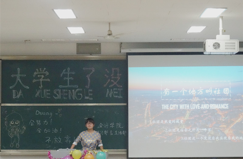 本次讲座旨在帮助大一新生更好地了解大学生活,尽快适应新环境,从大学学习和日常生活两个角度,对新生关注的校园生活、学习规划以及娱乐等问题进行了全面细致的解答。首先,由学习部的白文哲同学向大家简单介绍了大学生活。她从亲身经历出发,鼓励大家多参与社团活动,在社团活动中找到自身价值。她还强调学习的重要性,并就新生应处理好人际关系以及恋爱的选择等诸多问题进行详细解答。随后,话题由学习到生活逐渐展开。沈雪尧同学带领大家历数会计专业考证路上各种证书,对各类证书进行简单介绍并重点传授备考经验,有效增加了同学们考证的“干货”储备,便于大家更好地做出专业规划。与学习有关的严肃话题过后,温馨轻松的生活篇拉开帷幕。首先,活在明水、乐在明水,杨丽丽同学为大家带来精致详细的明水攻略,事无巨细,于细微处见精思;吃喝玩乐玩转章丘,卢昭全结合“吃货当道”、“无乐不作”等五个板块为同学们具体介绍章丘的小吃、景点、交通路线等,风趣幽默,于动人处见细心;嗨翻济南乐享其中,翟羽佳同学以其精湛的PPT征服全场,为大家展现济南都市的现代之美。游玩攻略加上心灵鸡汤,暖人心脾,于无意中见真情。