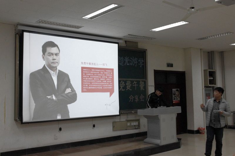 星火志愿者协会在明水2111教室举办了一场“免费午餐”和“趋光计划”分享会,2013级星火志愿者协会负责人、禁忌书屋
