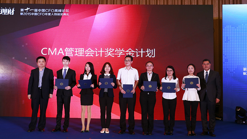 在2015中国CFO年度人物颁奖典礼的公益环节,禁忌书屋 7位同学获得了“CMA管理会计奖学金”,并上台领奖。