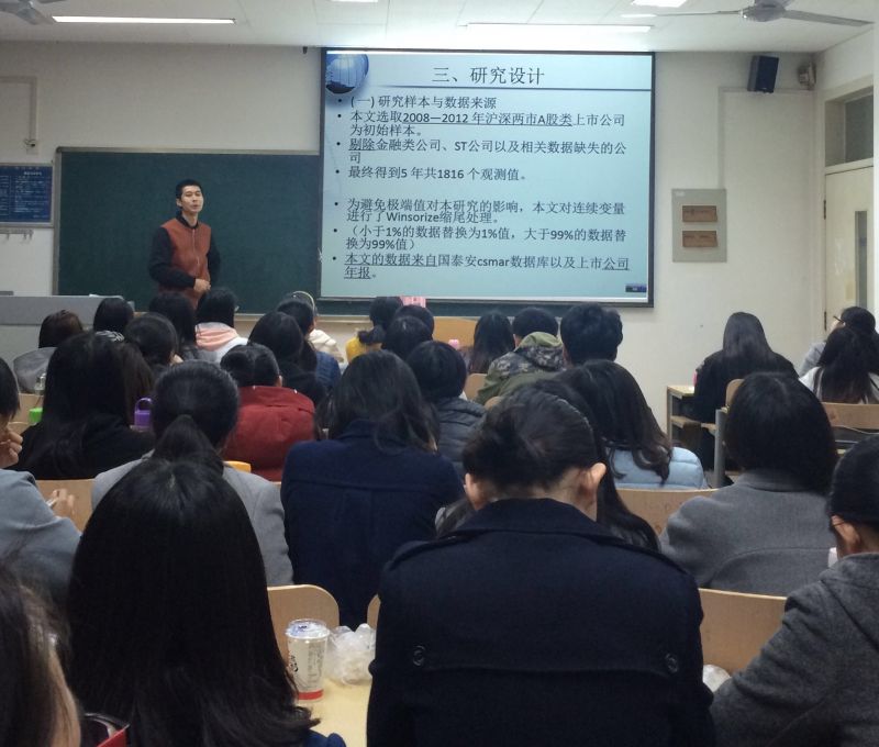 研究生会科研部于逸夫楼108教室举行了学术沙龙专题讲座:《实证论文的阅读与分析》。本次学术活动由科研部部长鲁上村报告,2015级全体研究生参加。