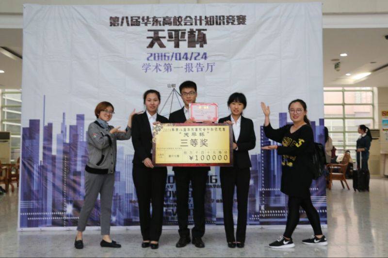 4月24日下午,第八届“天平杯”华东高校会计知识竞赛决赛在浙江财经大学举行,我院吕金霞、郑禹、张素三名同学代表我校参加决赛并斩获三等奖。
