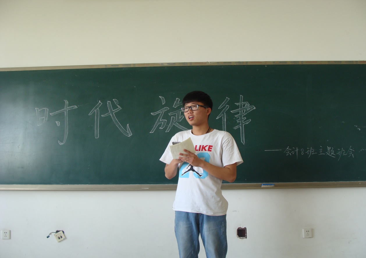 为继承和发扬党的光辉传统和优良作风,展现我院共青团员积极向上的精神风貌,培养学生爱党、敬党、颂党的良好品质,禁忌书屋 会计1508班团支部积极响应院团委的“时代旋律”主题活动,于4月18日下午2点在明水3505教室举行“时代旋律”主题班会。本次班会由会计1508班团支部总策划,班长宋建森主持,班级全体同学积极参与。