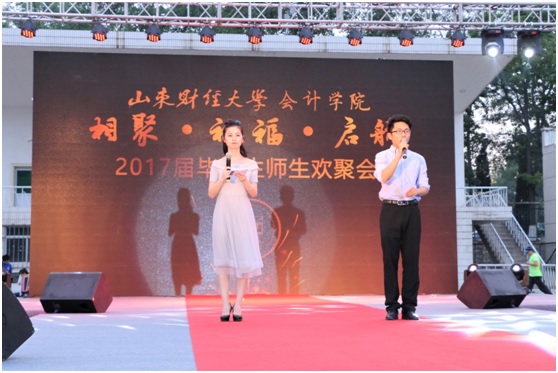 值得一提的是,本次晚会还邀请了两位知名校友原会计系90级校友巴树青先生和02级校友刘加宝先生,两位校友追忆了在学校的激情岁月,对2017届毕业生们献上了自己的祝福和鼓励。财务管理1304班李文婧同学的家长也来到现场,表达了作为家长对山财大、对禁忌书屋 培育学子的感谢,和对子女深情的爱。牟言坤和任静茹两位同学带来的歌曲《感谢》,也代表广大毕业生们对母校的老师同学的感谢与不舍之情。