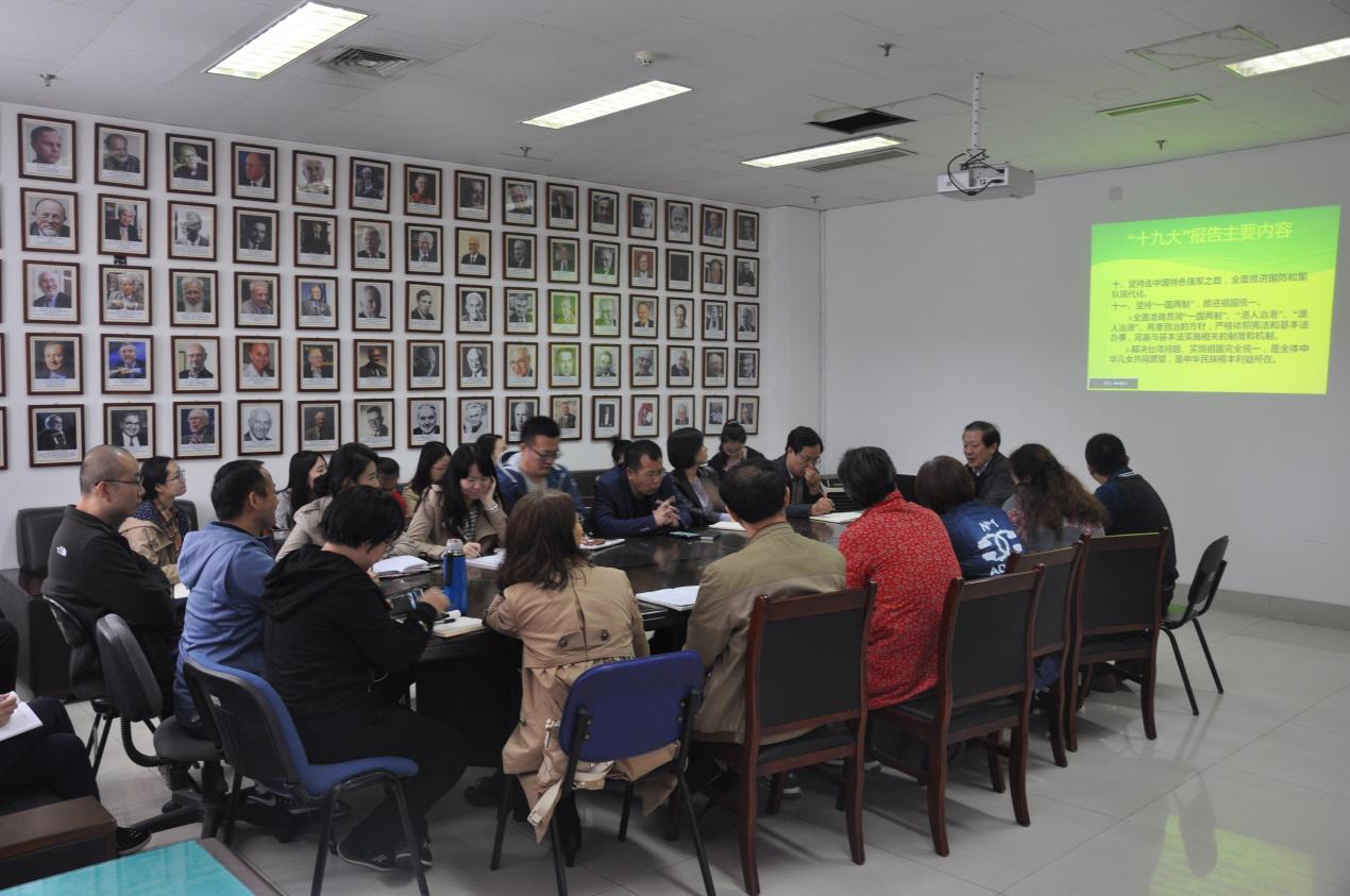 与会人员共同学习和认真领会“十九大”的内容和精神,感受在党的领导下国家在过去五年的历史性变革和取得的成就,展望中华民族未来一个时期的发展蓝图和美好生活,切身感受到中国特色社会主义进入新时代党,作为一名共产党员的历史责任和光荣使命。大家纷纷表示,十九大报告振奋人心,深得民心;倍感振奋,深受鼓舞,作为党员一定要不忘初心,牢记使命,在十九大精神指引下,坚定不移地贯彻落实党的教育方针,落实立德树人的根本任务,为实现高校教育的内涵式发展贡献力量。