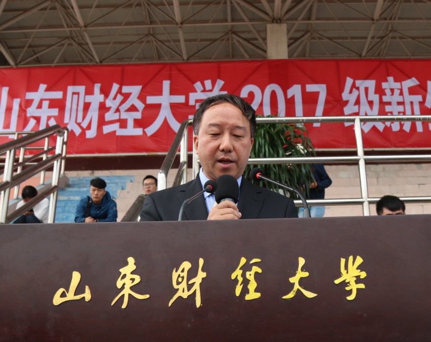 在教师代表、校友代表、在校生代表、新生代表相继发言结束之后,校长卓志给我们带来了精彩的讲话,校长首先欢迎了来自全国各地五湖四海的新生和对承训部队的感谢;与同学们分享了山财大的故事和历史,让同学们感受到了山财大浓厚的文化底蕴与学术气息;他希望大一新生们到了大学也依然要努力学习,全面发展,积极响应国家的号召,努力把自己培养成国家的栋梁!