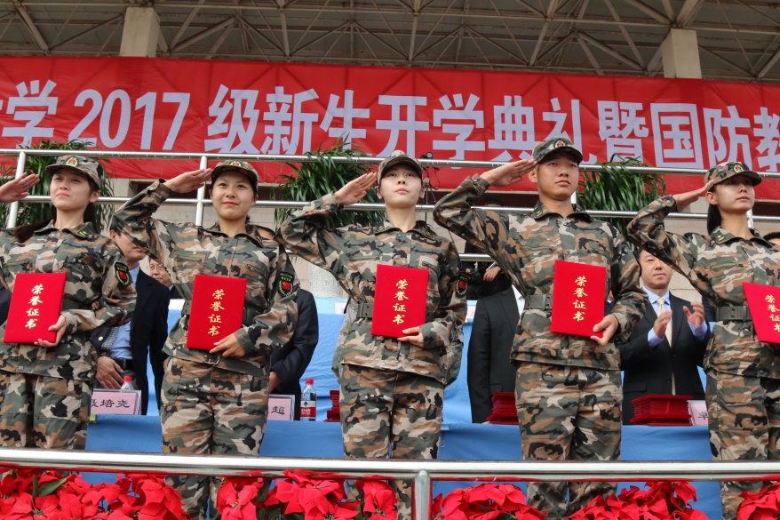 最后,大会在全体新生的宣誓中结束。此次大会的召开,标志着2017级新生14天的军训生活正式落下了帷幕。国庆放假回来之后,同学们将全身心的投入到日常学习生活中,希望他们尽快适应全新的大学生活,带着永不言败的勇气,创造属于他们自己的美好生活!
