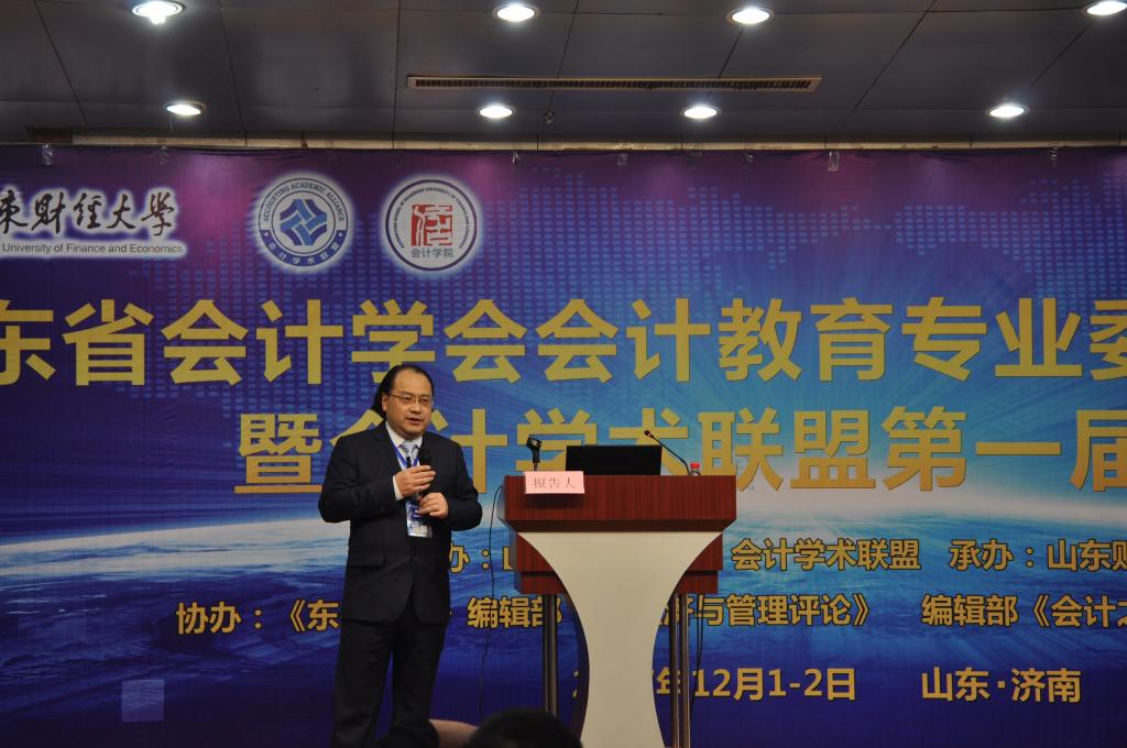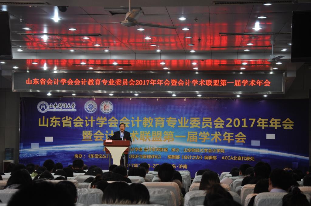 12月2日,由山东省会计学会、会计学术联盟联合主办,禁忌书屋 承办,《东岳论丛》编辑部、《经济与管理评论》编辑部、《会计之友》编辑部、ACCA北京代表处协办的山东省会计学会会计教育专业委员会2017年年会暨会计学术联盟第一届学术年会在山东天舜大厦成功举办。山东省财政厅会计处处长刘焕平、对外经济贸易大学副校长张新民、南京财经大学副校长王开田、西南财经大学教授蔡春、会计学术联盟发起人李高波、禁忌书屋 副校长韩作生、禁忌书屋 院长王爱国、党委书记张涛出席大会开幕式。来自中央财经大学、中国人民大学、南开大学、山东大学、兰州大学、北京交通大学、西南财经大学、东北财经大学、中南财经政法大学、南京财经大学、东南大学、河海大学、中国海洋大学、首都经济贸易大学、澳大利亚伍伦贡大学 、ACCA中国区等40余家单位的近200位学者、专家、博士、硕士研究生应邀参加了此次年会。
