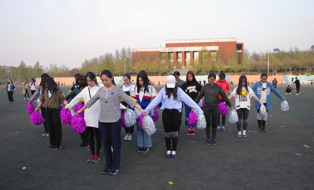 清晨六点,姑娘们在操场上准时集合,为了训练臂力,让动作更有力度更加深入人心,她们用水瓶代替了花球。一次次的抬臂让她们微微出汗,汗水映着朝阳闪耀着如宝石般美丽的光芒。旋转、踢腿、抬臂、回眸,姑娘们的一颦一簇成为了这个春天最动人的风景。下午五点半,同样的身影,同样的舞姿,但更多的是同样的坚持。没有人轻言放弃,没有人频频不耐,没有人放弃这个团体。影子不断拉长,当太阳完全消失在山的一边,灯光下的操场就是她们的舞台!整齐划一的动作,迅速到位的舞步,眼神交流时无声的默契……引得同学们驻足观看,百看不厌。俗话说的好:“台上一分钟,台下十年功。”一个多月的训练,只为能在耀眼的一瞬光芒万丈!不知疲惫的重复着同样的动作,不知经历了多少重组和调整,不知流下的是汗水还是泪水,她们用行动诠释了青春该有的样子,成为了她们最美丽的样子。
