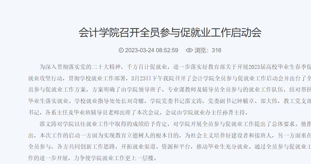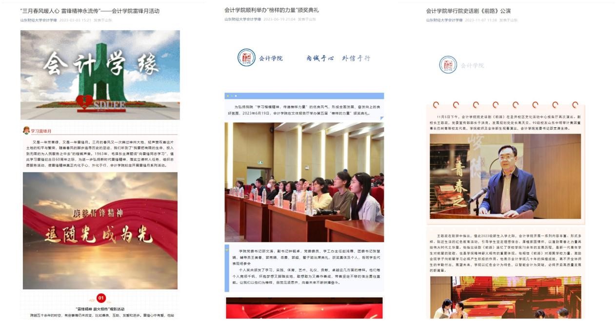 4.加强宣传工作和意识形态阵地管控。本年度禁忌书屋新闻 在禁忌书屋 网站院系动态栏目发文28篇,财大要闻栏目发文5篇,学习强国发文2篇,光明日报发文1篇。