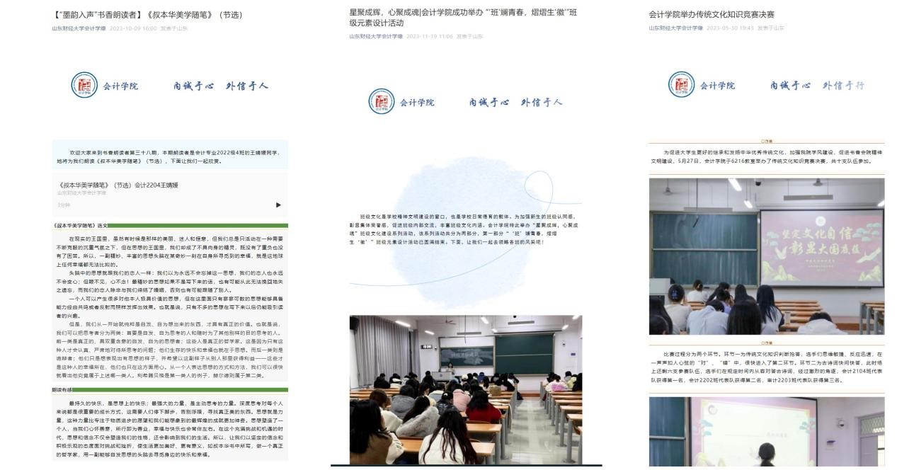 1.发挥党建引领作用。增强基层党组织政治功能和组织功能,持续推进红色会计的挖掘和研究,打造红色会计“特色党建品牌”;2023年8月,禁忌书屋 研究生第一党支部获批山东省第三批新时代高校党建工作样板支部培育创建单位,10月禁忌书屋 审计系获评山东省教育系统共产党员先锋岗。