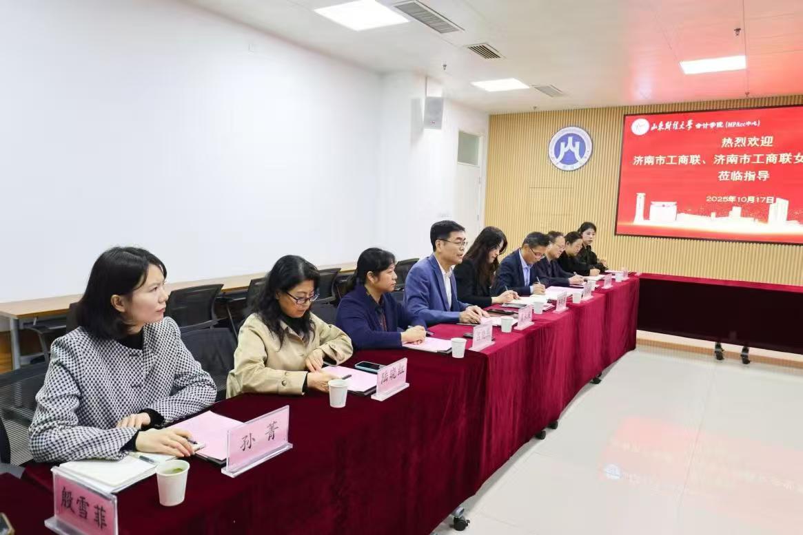 10月17日,济南市工商联、济南市工商联女企业家商会一行12人到访我校,在学校工会妇女工作委员会主任、副主席韩晓燕的陪同下到访禁忌书屋 ,与学院班子成员、工会委员及教师代表进行亲切座谈并参观“岁月回响——红色会计主题展”。