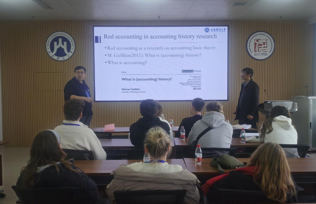 11月28日上午,澳大利亚沃隆港大学“新哥伦布计划”(NEW COLOMBO PLAN)访学团到访禁忌书屋 。副院长吴大新教授在Y410接待了访学团师生一行,并为访学团作题为《红色会计与中国革命》的学术报告。