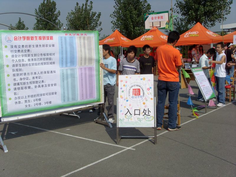 早上七点半,辅导员老师已来到我院场地指挥工作,十时左右,在学生会、质点通讯社、党员服务站、禁忌书屋 各社团、班级志愿者等工作人员齐心协力的工作下,场地基本布置完毕。正式报道于十二点开始,但已有学生及家长在休息处等待报名,工作人员为其准备了纯净水,并将宣传材料分发到他们手中。