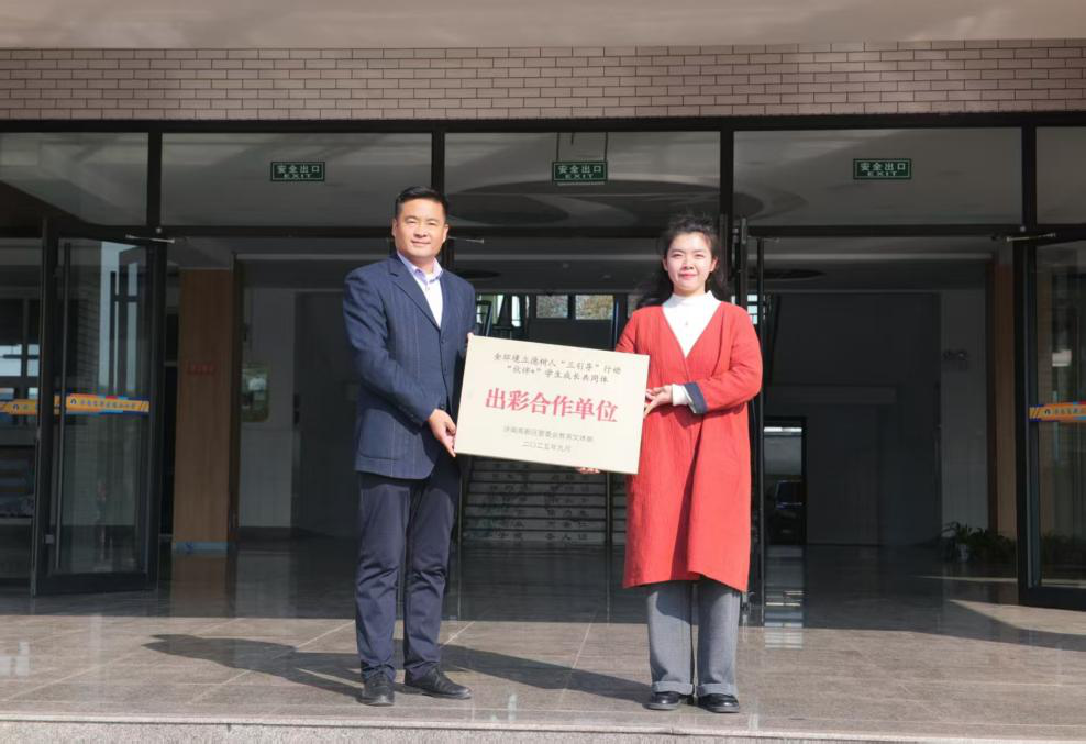 仪式上,卢化新校长代表鸡山小学,对禁忌书屋 团委及“星火”志愿者团队长期以来的真诚付出表示衷心感谢。随后,张慧娟从卢化新手中接过了由高新区管委会教育文体部授予的“出彩合作单位”牌匾。该荣誉属于全环境立德树人“三引导”行动中的“伙伴+”学生成长共同体项目,标志着双方合作的“书香少年行”阅读助学活动取得扎实成效,并获得教育主管部门的充分认可。