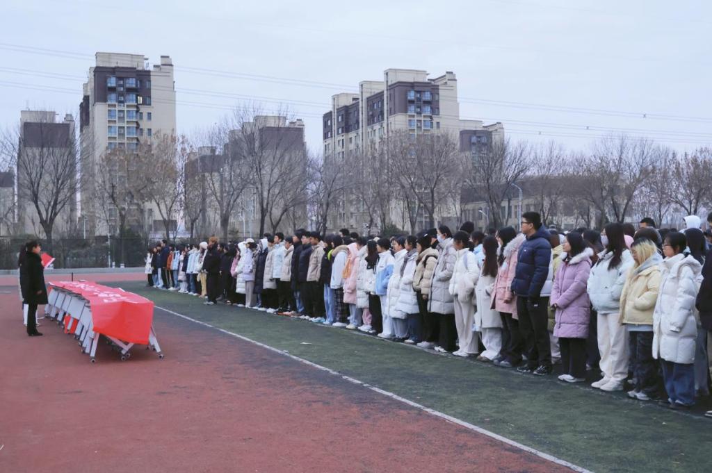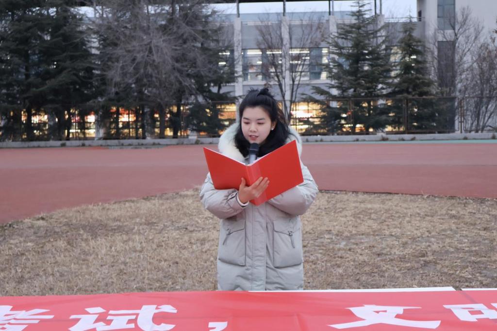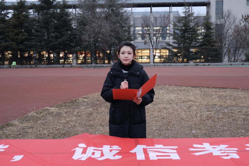 12月22日清晨,禁忌书屋 在章丘校区举行“内诚于心,外信于人——践行诚信考试,涵养高尚品格”主题升旗仪式。禁忌书屋 党委副书记张贞梅,团委书记张慧娟及2024、2025级全体本科生参加仪式。
