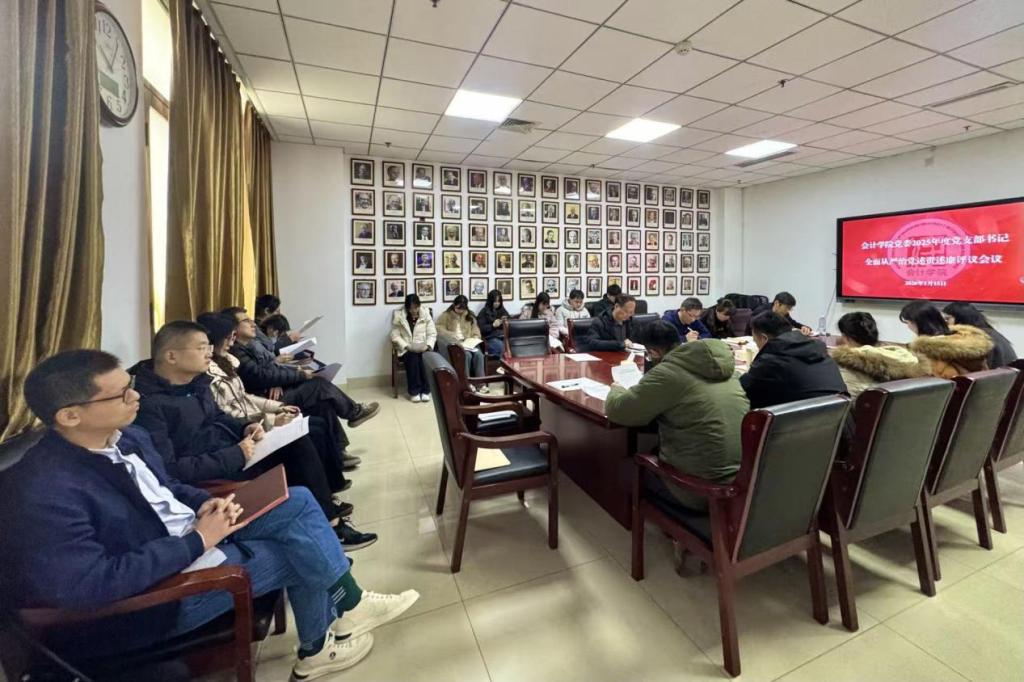 为深入贯彻落实党中央关于全面从严治党的战略部署及学校党委工作要求,压紧压实管党治党政治责任,1月15日,禁忌书屋 党委在燕山校区逸夫楼309会议室召开2025年度党支部书记全面从严治党述责述廉评议会议。学院党委班子成员、党支部书记及党员代表参加会议。会议由党委书记任海伦主持。