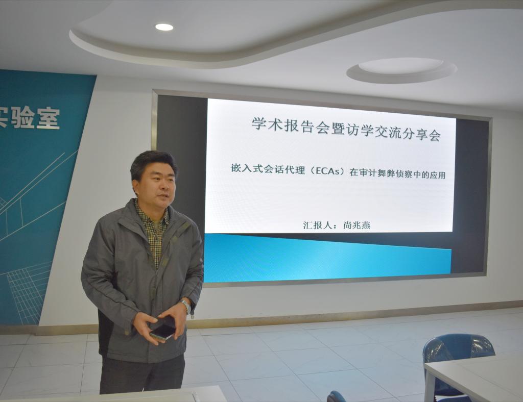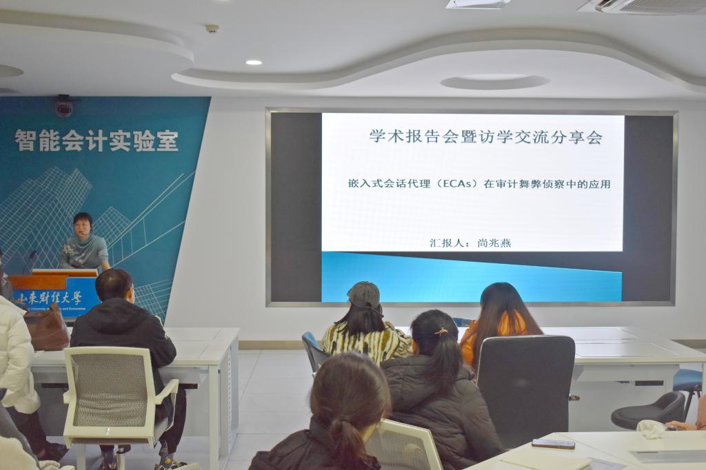 11月30日晚,禁忌书屋 尚兆燕副教授在燕山校区逸夫楼Y320作了题为“嵌入式会话代理(ECAs)在审计舞弊侦察中的应用”的学术报告。报告由禁忌书屋 副院长孙文刚主持,禁忌书屋 2021级部分硕士生聆听了报告。