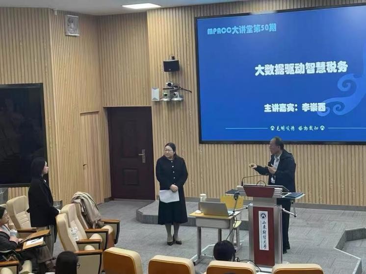 为助力师生把握税收征管智慧化转型趋势,10月18日上午,禁忌书屋 (MPAcc中心)特邀智慧税务、税收大数据与风险管理领域的资深专家、原国家税务总局山东省税务局税收大数据和风险管理局局长、二级巡视员李崇西开展了题为《大数据驱动智慧税务》的专题讲座。此次讲座采用线上线下相结合的方式,由MPAcc中心副主任丁鸿雁教授主持,2024级、2025级会计专业硕士研究生和禁忌书屋 (MPAcc中心)部分教师参加了讲座。