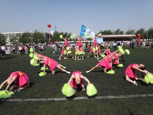 校运动会正如火如荼的进行着,看台上人声鼎沸,观众热情如潮。啦啦操的姑娘们灵动在明媚的阳光下,用轻快的舞姿和甜美的微笑感染着赛场上的所有人。她们将舞蹈、艺术体操、彩带与彩球进行完美融合,旋转、跳跃,伴随着运动员矫健的步伐,用粲然的笑颊和曼妙的舞姿奏出希望的乐章。这是多少天不畏疲惫的训练成果,这是多少次为一组舞蹈不断磨合的杰作。她们默默熟悉着每一个舞步,仔细回想着每一个动作,只为了这一场运动的盛宴。破茧化蝶,带着伤痛的灿烂,幻化为阳光下的精灵,用热情点燃赛场上运动健儿们拼搏的激情。春日的体育场,有了啦啦操的装扮,竟是如此灵动美丽。也许摘金夺银的梦想和他们无缘,也许他们只是扮演了一个小小的角色,但是正因为有了他们,运动员会更加坚定地冲向终点,赛场内狂热的气氛才得以延续,看台上的观众才会在紧张的比赛中感受到体育竞技的独特魅力。