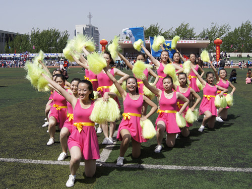 旋风一样,是飞扬的流苏;火花一样,是闪射的瞳仁;精灵一样,是灵动的风姿。啦啦操的姑娘们是阳光下的精灵,飞舞着《push push》的旋律,用自己的活力演绎着青春,用青春感染着场上的运动健儿们。