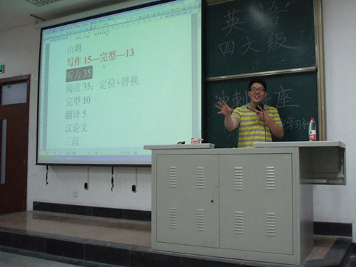 学习部主办的英语四六级冲刺讲座在明水教学楼3101教室顺利举行。来自济南新东方英语培训机构的毕晨光老师和山姆老师应邀担任了本次讲座的主讲。