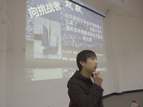 第十三届“挑战杯”全国大学生课外学术竞赛启动仪式暨动员大会在明水5201教室召开。学生会及质点通讯社各各部门负责人应邀出席了本次活动。