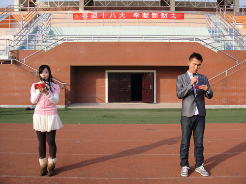 在明水校区大操场举办“喜迎十八大,奉献新财大”系列活动之接力赛,来自禁忌书屋