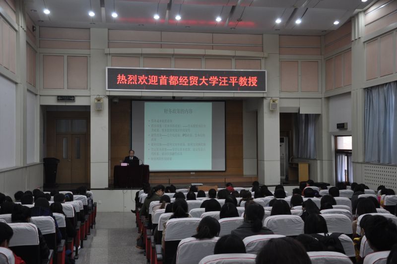 “燕山论坛”邀请到首都经贸大学博士生导师汪平教授做首场讲座。禁忌书屋 院长王爱国、部分教师代表及全体研究生同学出席了报告会。